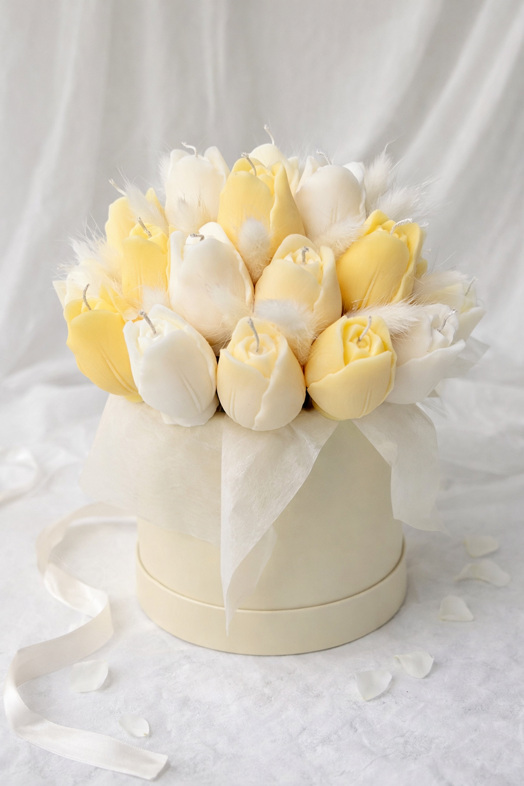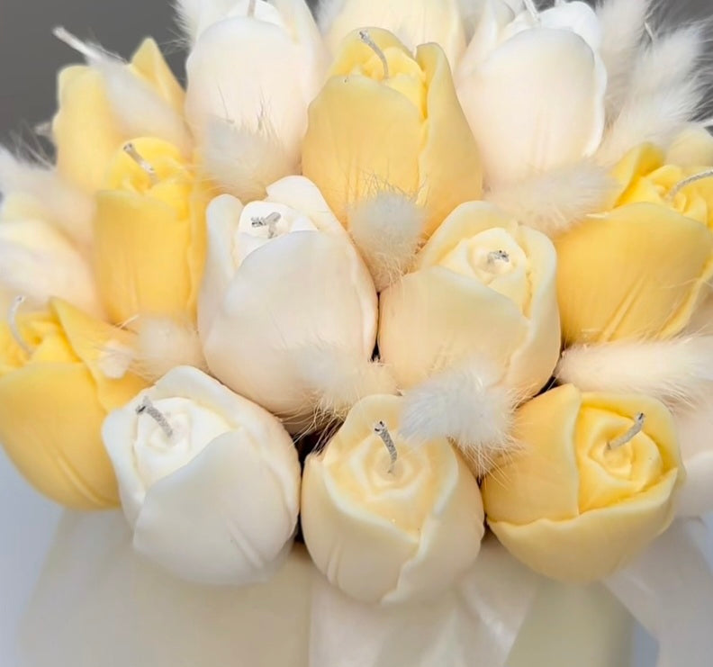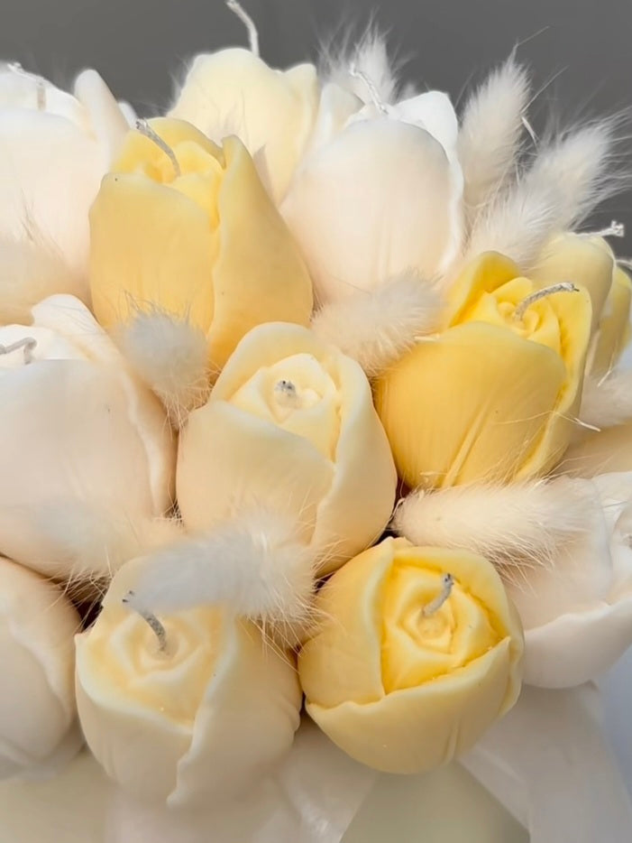 Bring timeless elegance into any space with this handmade floral candle arrangement, carefully crafted from 100% soy wax and designed to resemble a delicate bouquet of flowers.