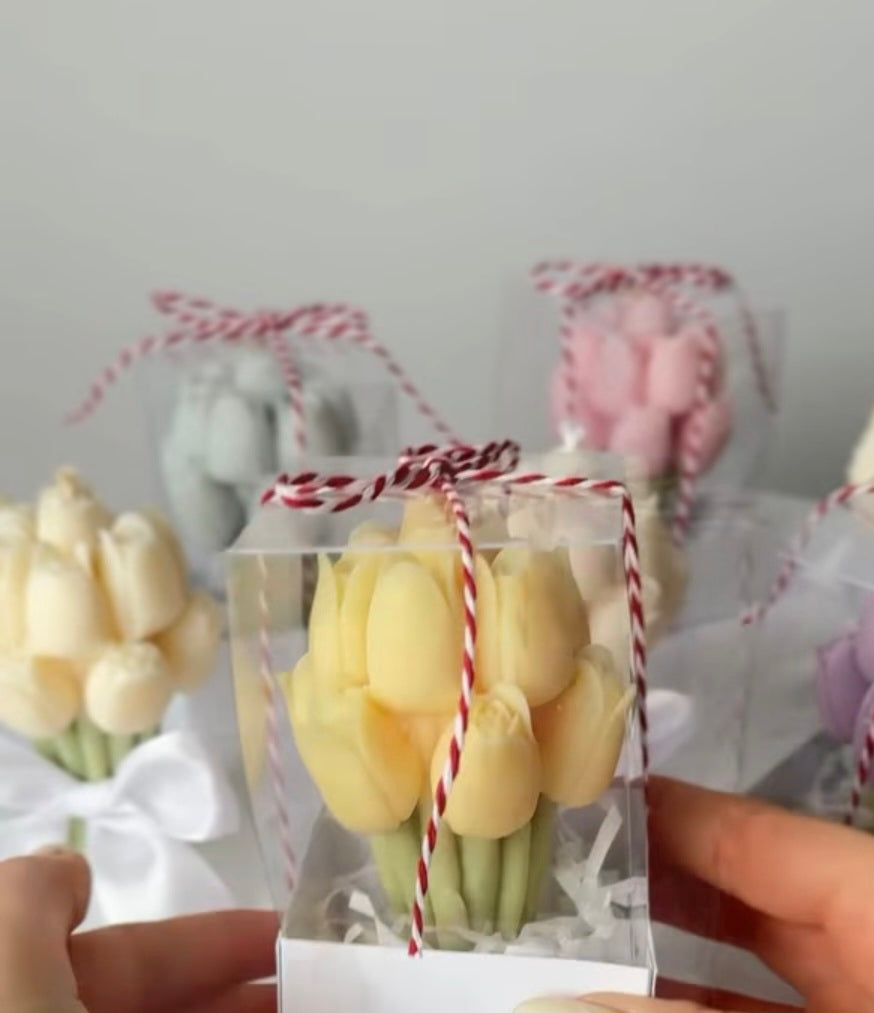 Each tulip is carefully crafted and lightly scented to add a soft, luxurious fragrance. Beautifully packaged and ready to gift, it makes a charming and thoughtful favor for your guests or a lovely decorative keepsake.
