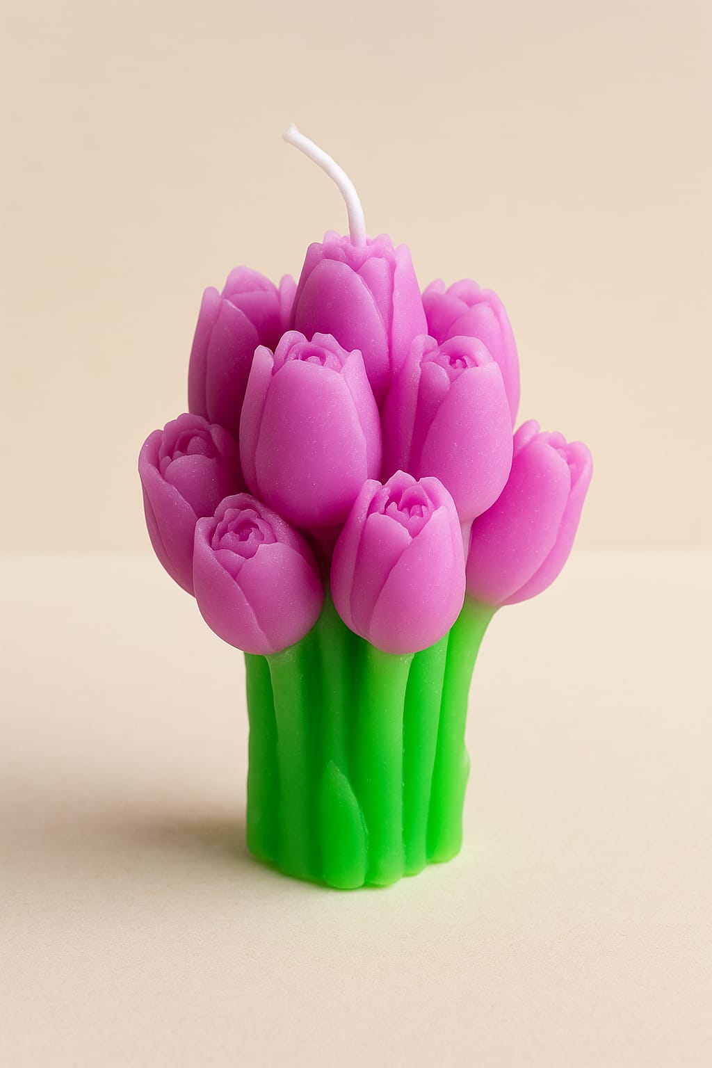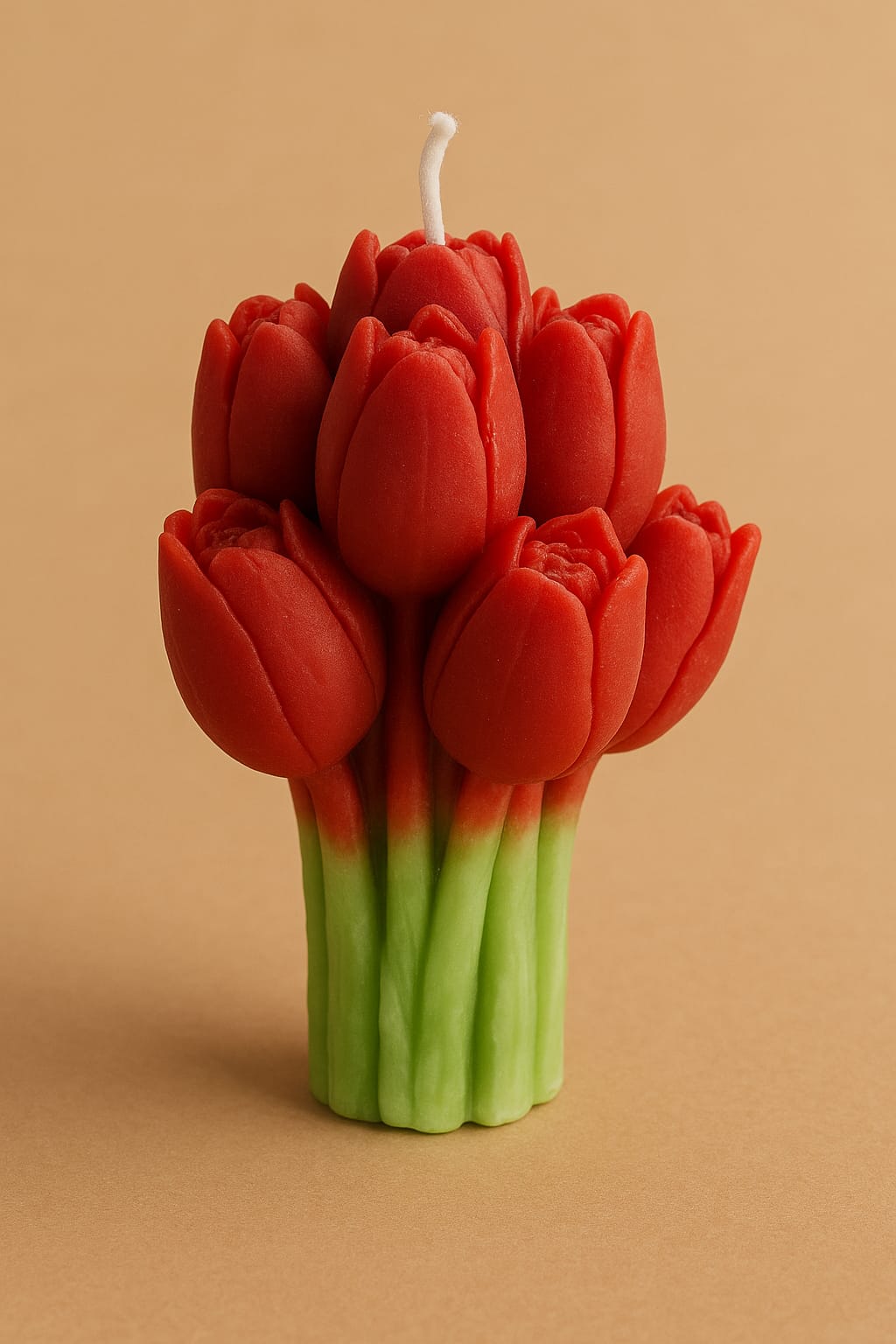 Each candle is crafted with love and attention to detail — designed to melt evenly and last longer than traditional paraffin candles. Perfect as a birthday gift, wedding favor, or home décor accent, this tulip-shaped candle brings warmth, serenity, and style to every occasion.